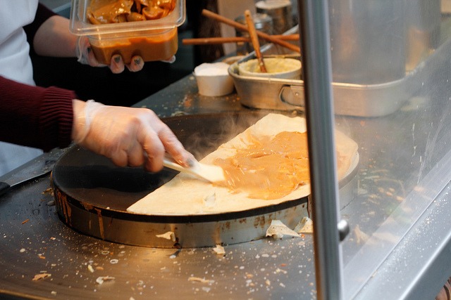 Crepes! Another day spent in the convention center, but I got out for lunch with an editor friend for street corner crepes, just like in Paris. Nummy.