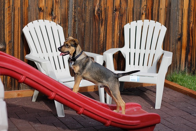 Booker commandeers the slide, tail at attention.