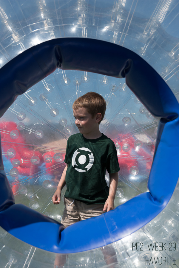 This week’s assignment asked us to think about our favorite thing about photography, whether in style, technique, genre, theme, or subject. “Whether you are just getting started with thoughtful, intentional photography with this project, or you you are an old hand at this and have a clear idea of your voice, you probably have a pretty good idea of what you like to photograph, and in what style.” I’ve been giving this a lot of thought lately as I dip my toes into shooting more professionally. I’ve done some seniors, some corporate work, but I keep coming back to lifestyle and family photography as my favorite style, both to shoot for money and for fun. My sweet spot: kids and dogs! And this is one of my absolutely FAVORITE kids — my son Sean, at the Colorado Irish Festival on Sunday, playing in a giant hamster ball. His natural smile just sets my heart on fire.