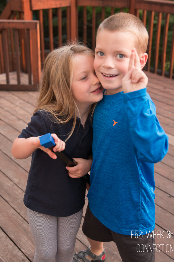 P52: Week 36 — Connection September 8, 2017 Kate If I could have managed a shot of the three kids, I would have, but for now, this is my favorite shot to show off this week’s theme of “connection”.